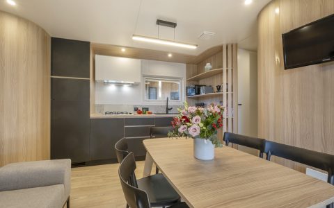 Le Village Le Suroit, votre camping 4 étoiles sur l’île de Ré, a tout prévu pour votre bien-être, même en cas de pluie. Profitez pleinement de votre séjour, quelles que soient les conditions climatiques, grâce à la location d’un mobil-home premium sur l’île de Ré. Confort et qualité des équipements sont au rendez-vous dans les hébergements haut de gamme du Village Le Suroit. Un véritable nid douillet avec literie de qualité, 2 salles de bain privatives et chauffage à activer par temps de pluie !